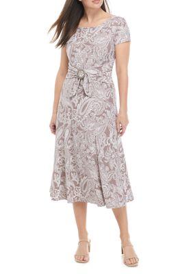 Perceptions Women S Cap Sleeve Paisley Print Ring Waist Midi Dress Belk